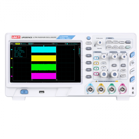 UPO2074CS具有4個模擬通道,70MHz帶寬,1GS/s采樣率的經濟型通用數字熒光示波器。存儲深度高達56Mpts(單通道),波形捕獲率達83,000wfms/s,4個通道時基獨立可調,豐富的高級觸發及總線解碼功能,以及豐富的外圍接口,超高的性價比優勢。