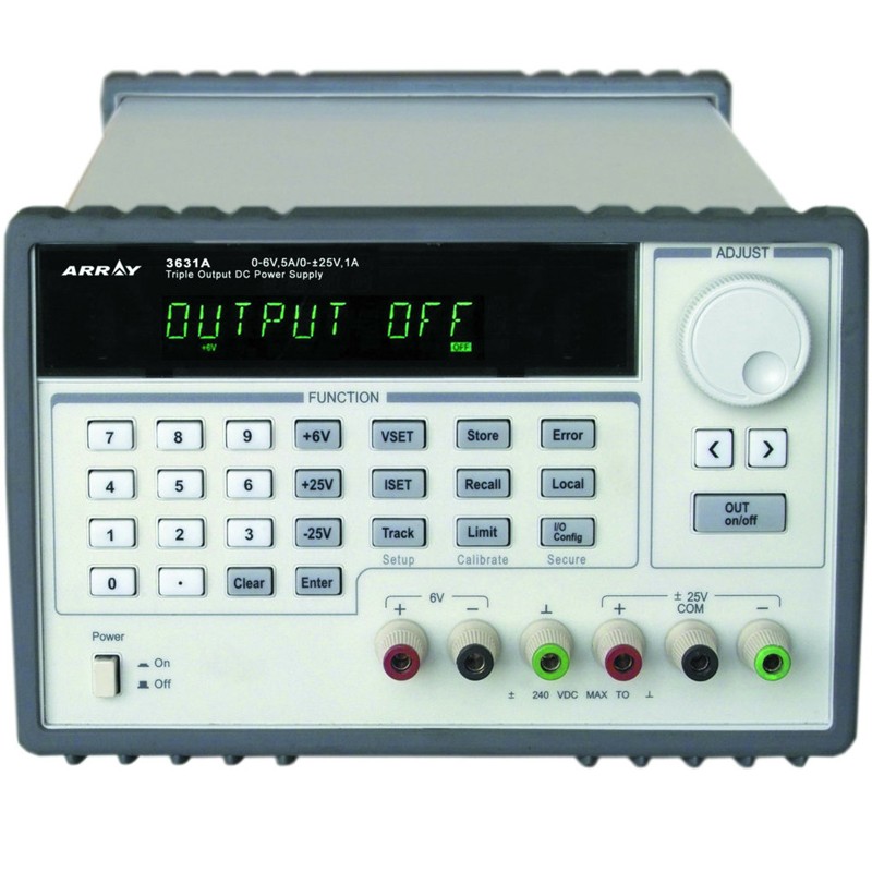 ARRAY 3631A型三路輸出直流電源可為科研開發人員提供穩定、可靠的直流輸出它具有雙路25V跟蹤輸出和一路6V隔離輸出。