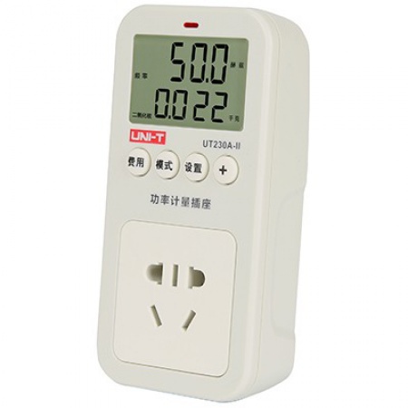 UT230系列多功能計量插座可在為電器設(shè)備提供接插用電的同時,實時監(jiān)測電器設(shè)備,讓您直觀、方便地了解電器設(shè)備的工作狀況(工作電壓、工作時間和耗電量等),同時可對電器設(shè)備的功耗進行實時分析,一旦發(fā)現(xiàn)電器設(shè)備工作異常將自動發(fā)出警告和顯示,為您科學(xué)、合理地使用和維護電器設(shè)備、節(jié)約用電提供有效幫助該產(chǎn)品功能多、精度高、計量準、價格低、體積小、使用攜帶方便,是您居家生活不可多得的迷你電表、電器衛(wèi)士、節(jié)能助手和用電管家;可廣泛適用于家庭、單位、學(xué)校、合租公寓等眾多場合