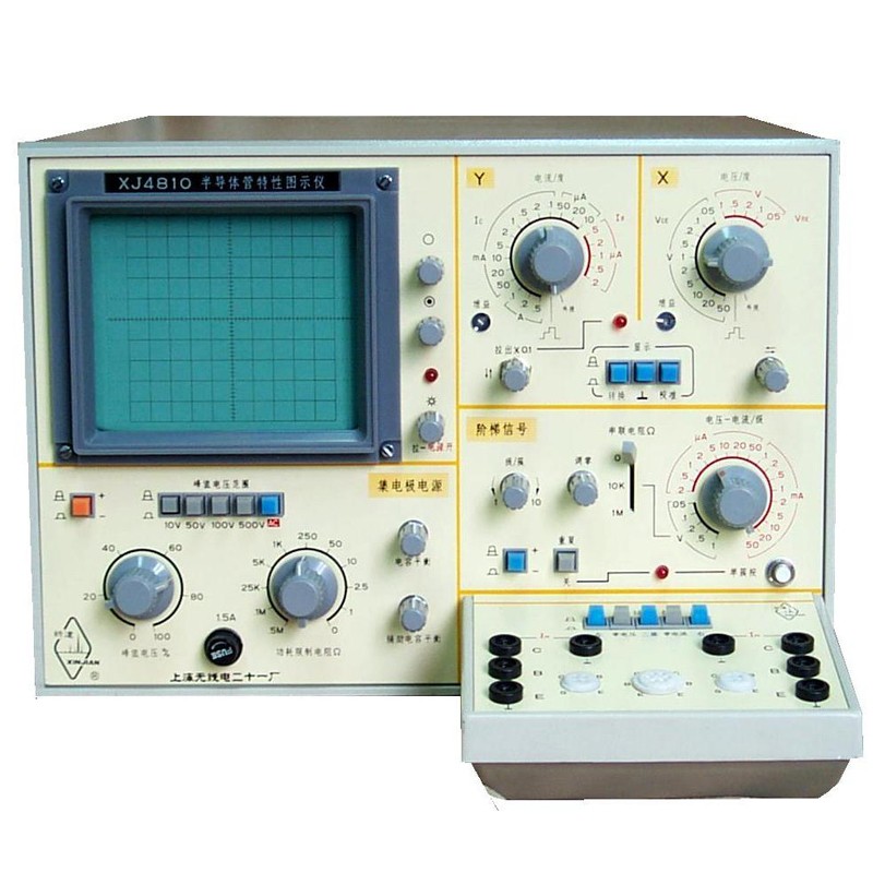 XJ4810型/XJ4810A型半導體管特性圖示儀采用示波管顯示半導體器件的各種特性曲線,并測量其靜態參數。本儀器具有二簇曲線顯示,雙向集電極掃描電路,可以對被測半導體器件的特司長進行對比分析,便于對管或配件配對。本儀器IR測量達200nA/div,配備擴展裝置后,VC可達3KV;可測試CMOS及TTL門電路傳輸特性;可對場效應管進行配對或對管測試;可測試三端穩壓管特性。