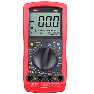 UT107儀表是1999計(jì)數(shù)的數(shù)字式手動(dòng)量程汽車多用表集汽車的轉(zhuǎn)速和閉合角測(cè)量、萬(wàn)用表測(cè)量于一體化的全功能萬(wàn)用表。具有特大屏幕、輸入連接提示、全量程過載保護(hù)和獨(dú)特的外觀設(shè)計(jì)、使之成為性能更優(yōu)越使用更安全的電工儀表。本儀表可用于汽車制造和汽車維修檢驗(yàn)的測(cè)量。