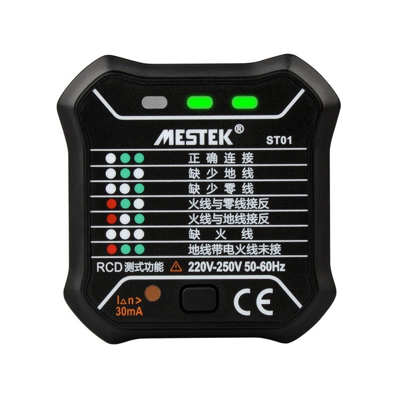 MESTEK邁斯泰克ST01插座測(cè)試儀地線零線火線相位極性漏電檢測(cè)儀多功能電工驗(yàn)電器