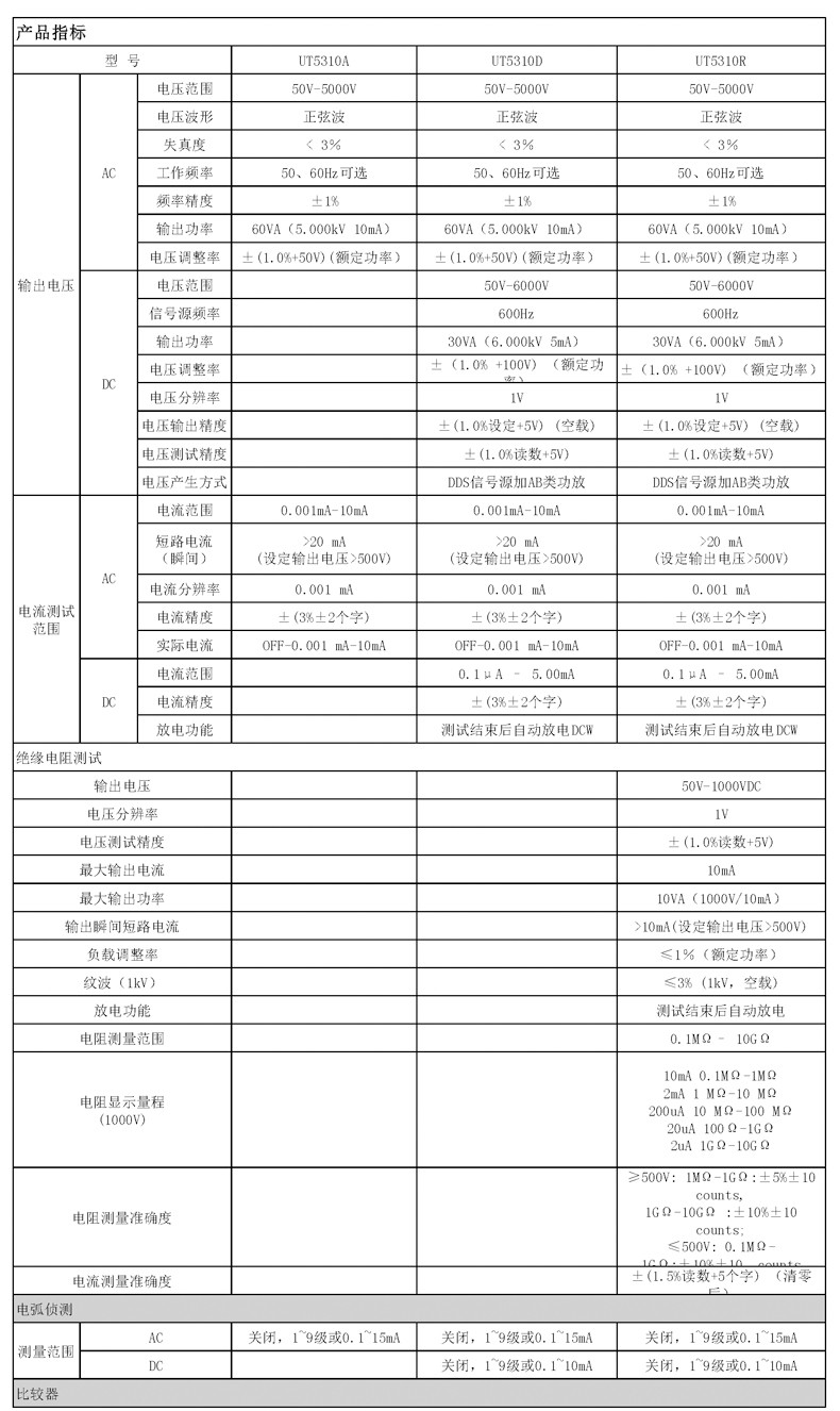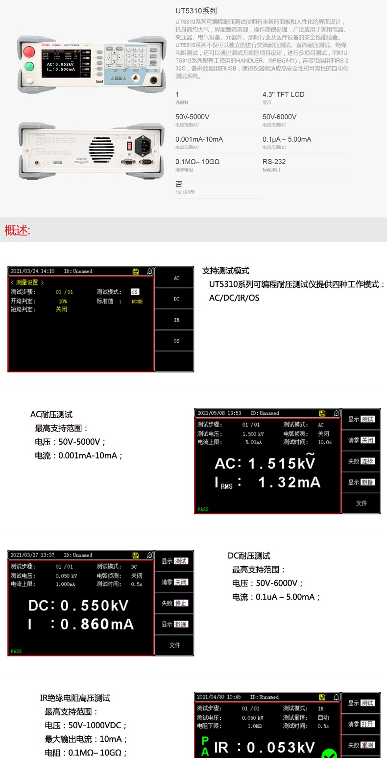 優利德UT5310系列可編程安規測試儀UT5310A/UT5310D/UT5310RUT5310A 交流耐壓測試儀UT5310D 交直流耐壓測試儀UT5310R 交直流耐壓絕緣測試儀