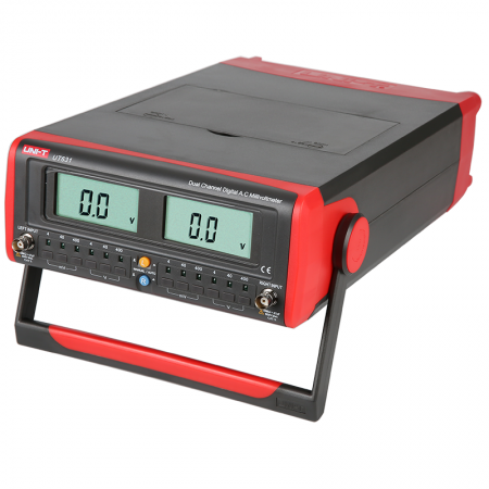 可兩通道同時測量同時顯示數顯交流毫伏表 具有測量電壓頻率范圍寬,UT631:10Hz~2MHz 輸入阻抗:≥10ΜΩ,輸入電容≤47pF 測量電壓范圍:400μV~400V 四位LCD數顯,最大顯示4040 分辨率高(1μV)且測量精度高