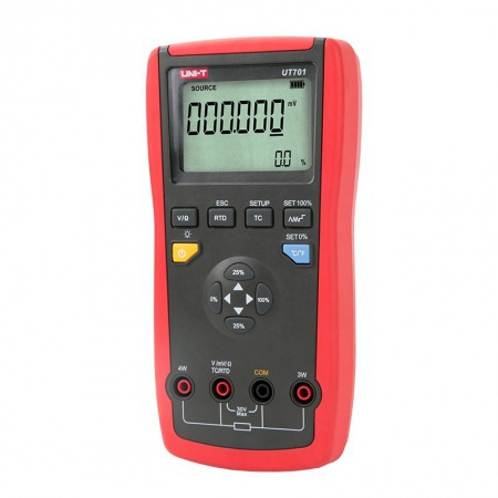 UT701是一款性能穩定,高精度手持式校準儀。能提供電壓、電阻及10種熱電偶,4種熱電阻的輸出。熱電偶輸出提供自動、手動兩種冷端溫度補償,具有自動步進和自動斜坡功能,25%步進功能可用于快速線性度檢測,其使用方便、性能高效,是非常適合溫度校準人員的測試工具。